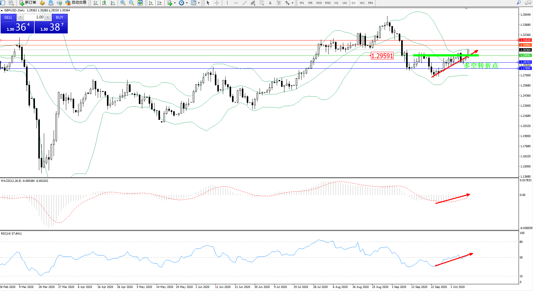交易策略:1.29591上方看涨,目标1.30964、1.31610