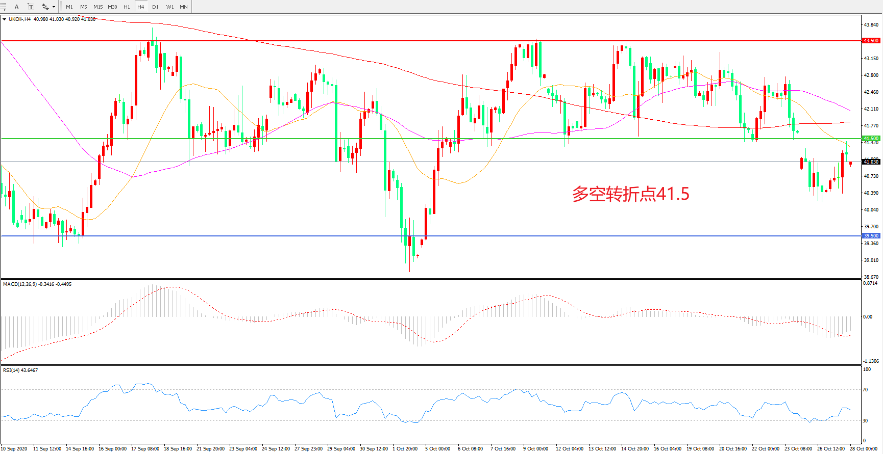 周一(10月26日),得益于热带风暴干扰美国墨西哥湾能源生产,油价扭转了连续两日下跌的势头,但由于API数据意外增加增加458万桶,布伦特原油快速跳水,收报41.01美元/桶,晚间EIA数据如果表现不佳,有可能引发油价新一轮的下跌,务必重点关注。