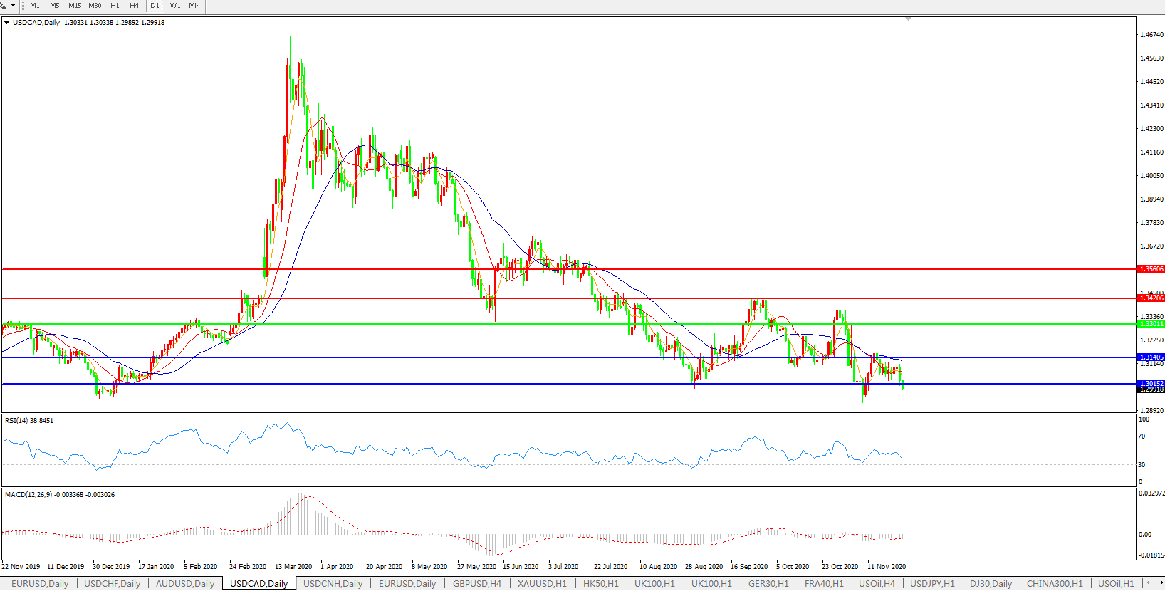 美元兑加元USDCAD    日线图: