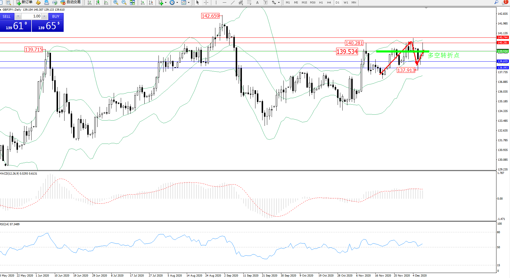 交易策略:139.534上方看涨,目标140.281、140.744