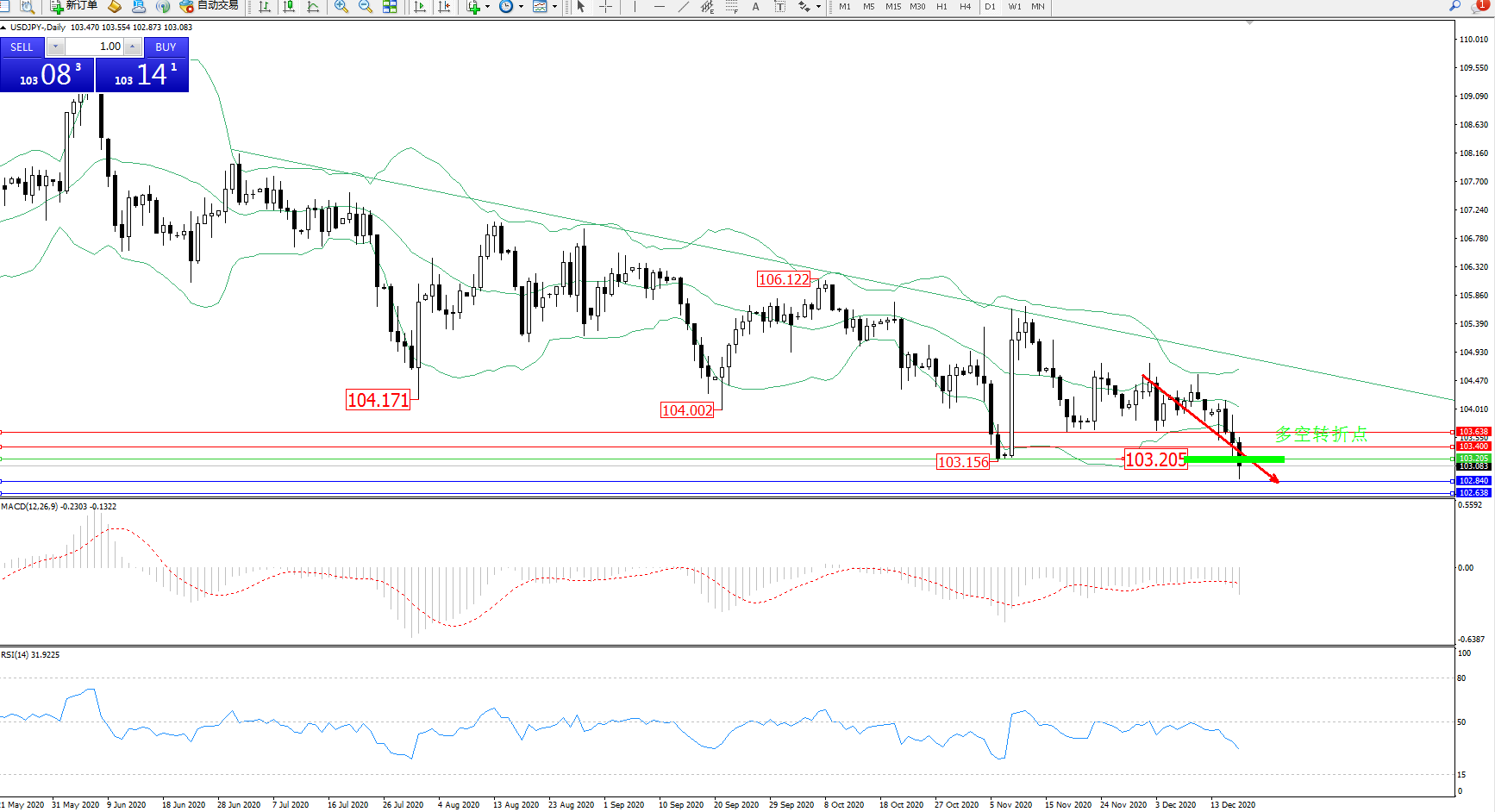 多空转折点:103.205