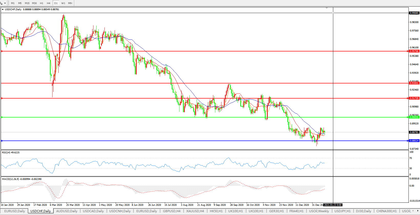 鲍威尔强调宽松立场,美元兑瑞郎弱势整理