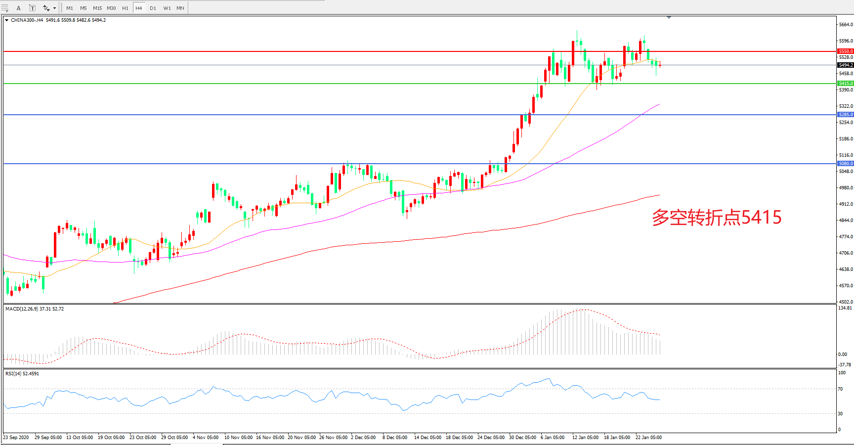 多空转折点:5415.00