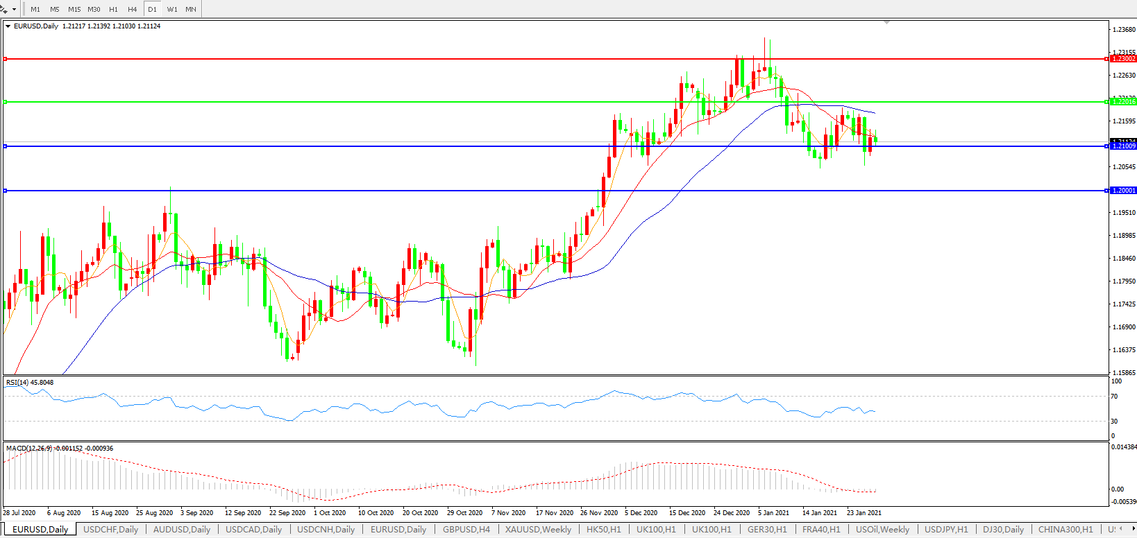 欧元兑美元EURUSD   日线图: