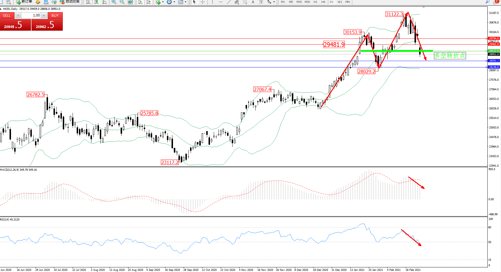 恒指HK50 ——日K线图显示: