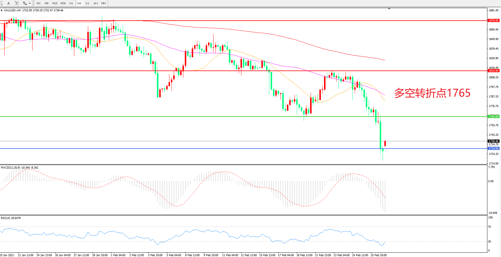 交易策略:在1765.00之下看跌,目标1730.00    1700.00