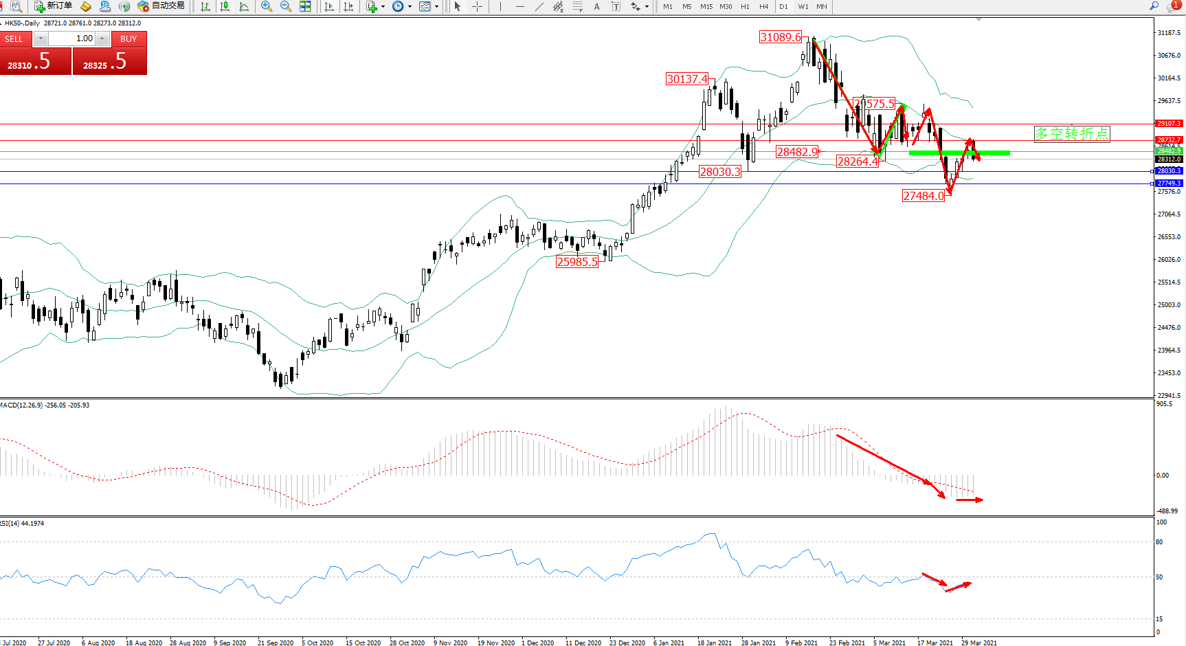 恒指HK50 ——日K线图显示:
