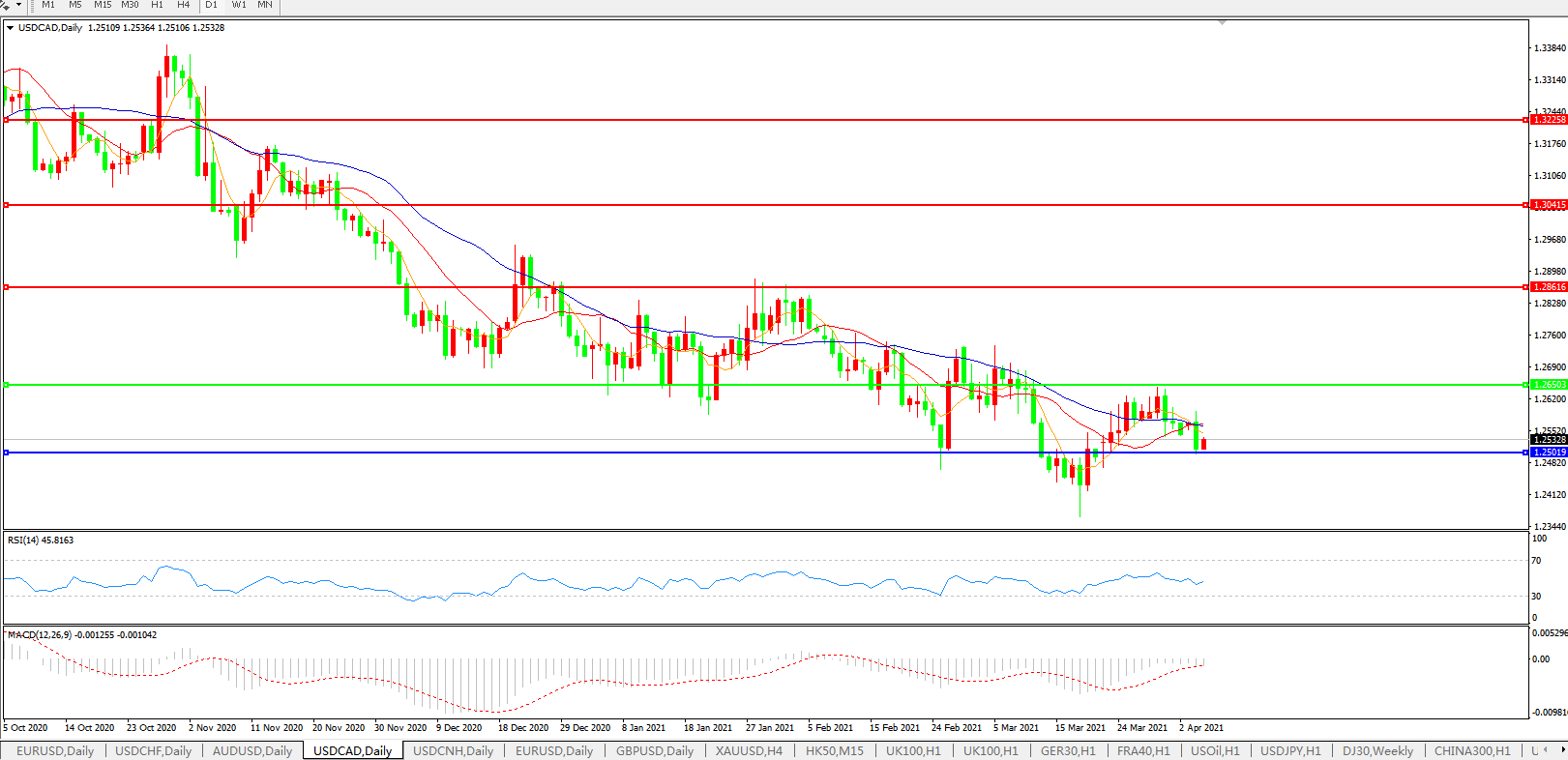 美元兑加元USDCAD 日线图: