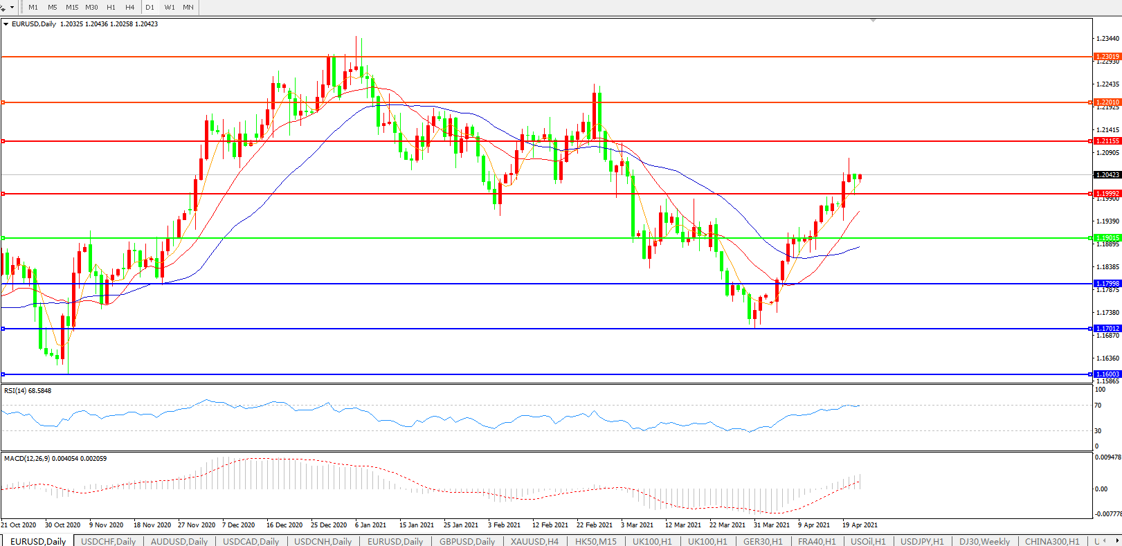 欧元兑美元EURUSD   日线图:
