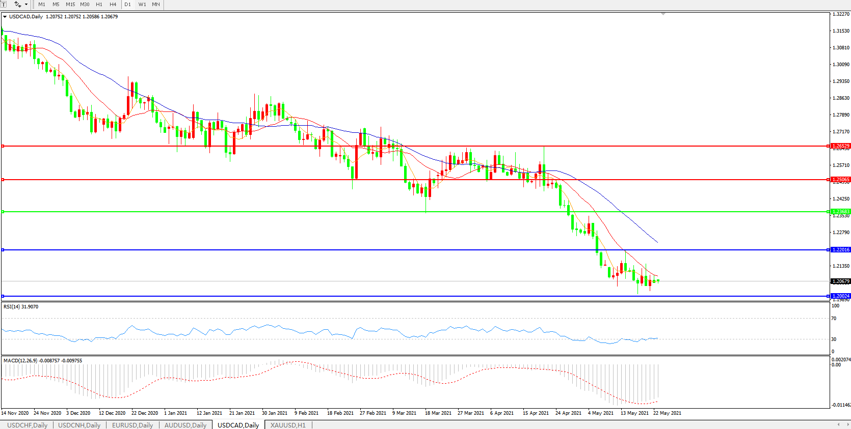 美元兑加元USDCAD 日线图: