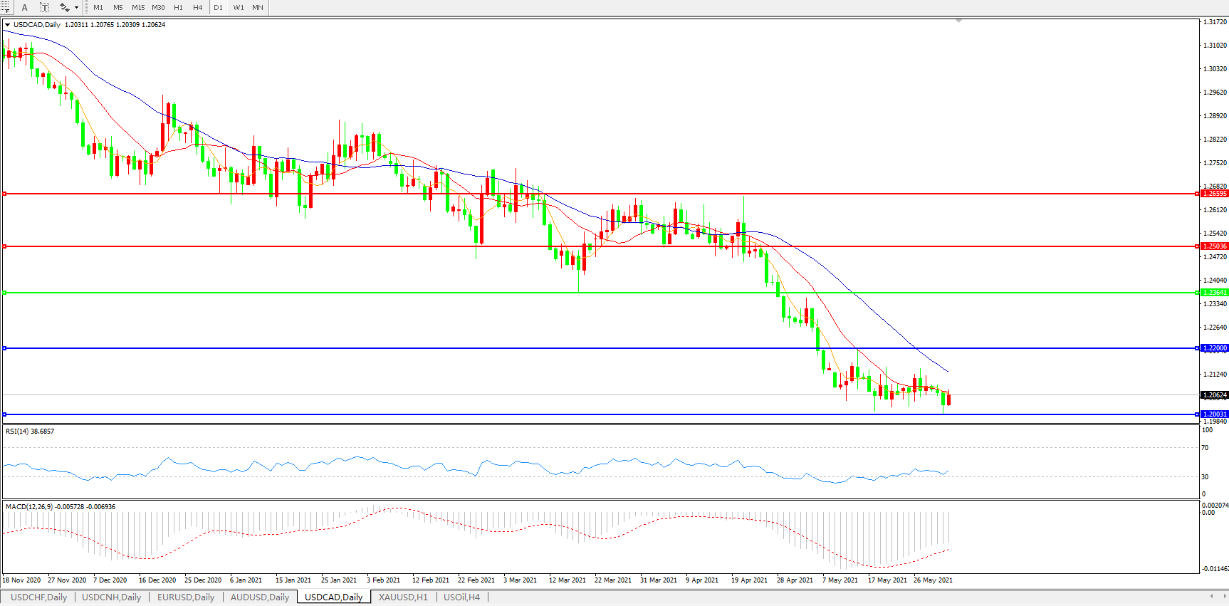 美元兑加元USDCAD 日线图: