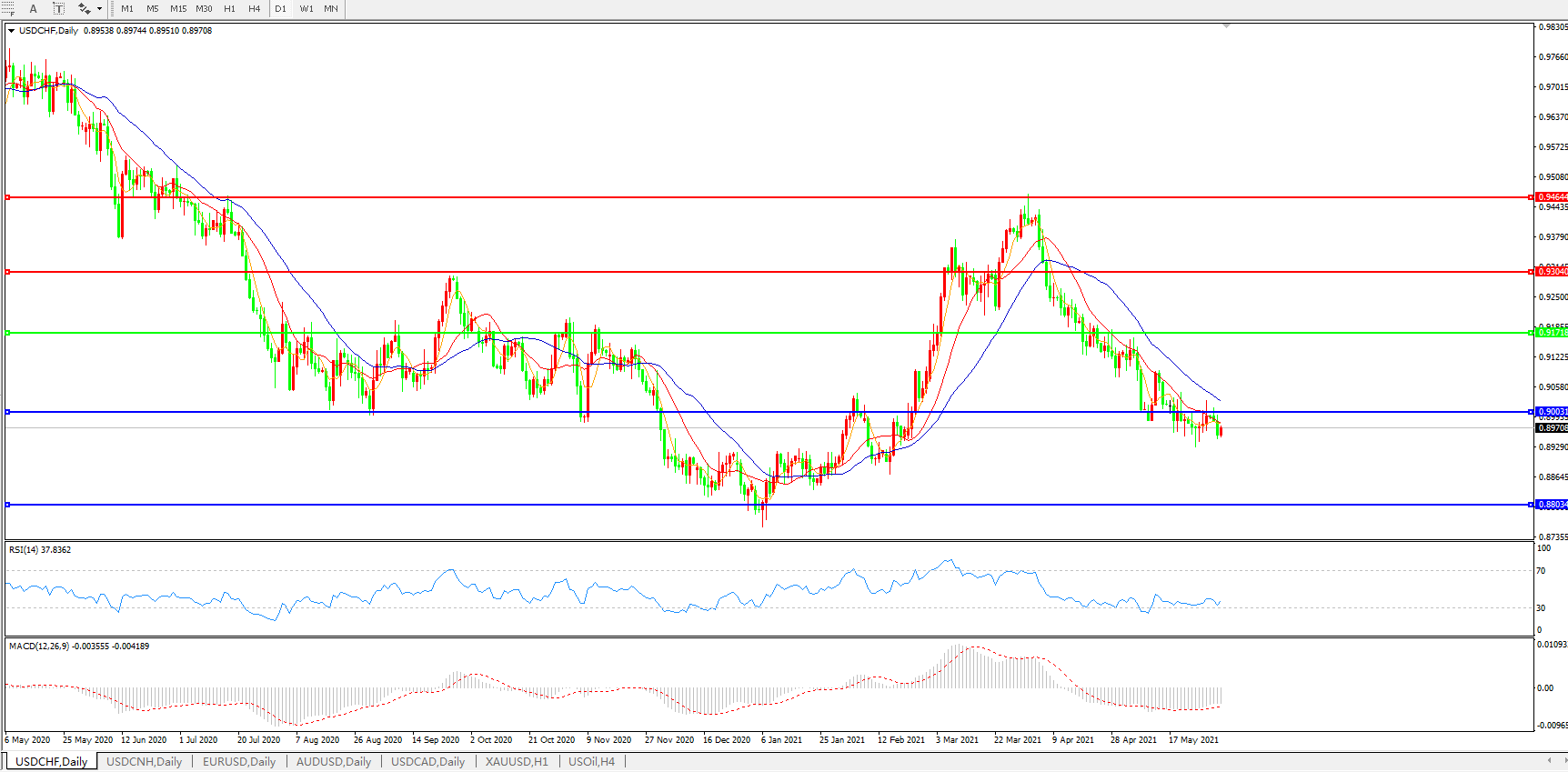 美元兑瑞郎USDCHF    日线图: