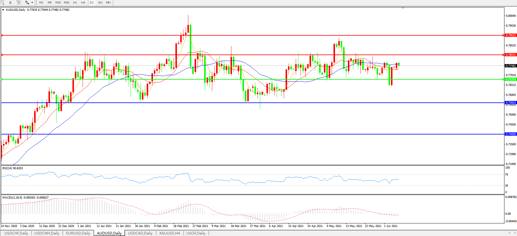 交易策略:0.7680上方看涨,目标0.7800、0.7900