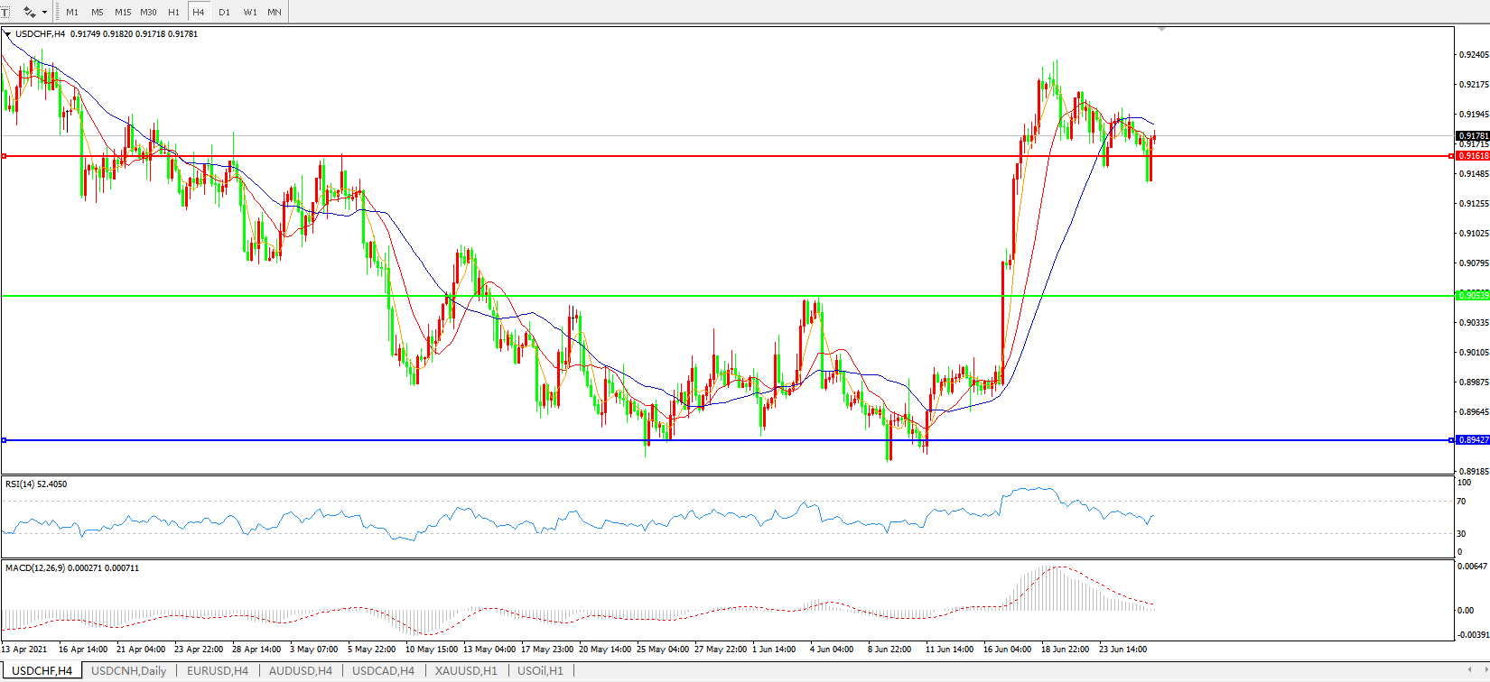 美元兑瑞郎USDCHF 4小时图: