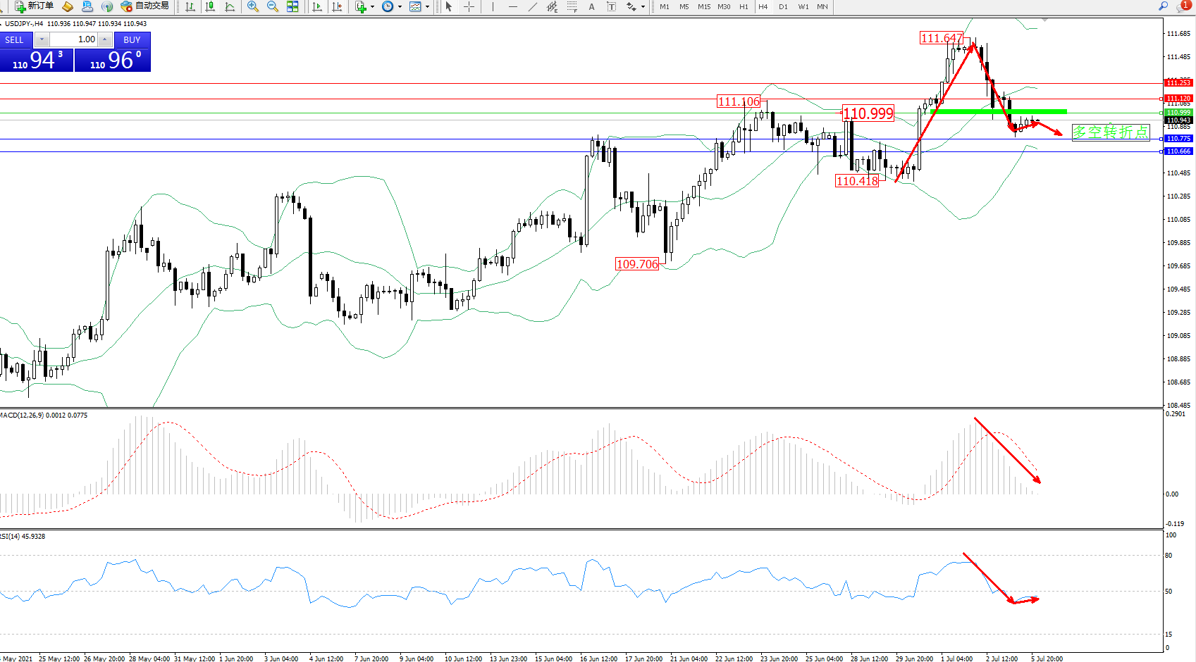 多空转折点:110.999