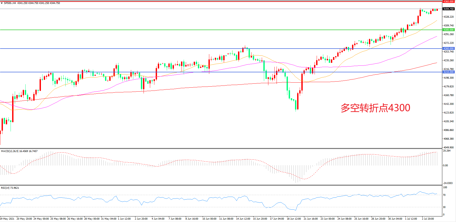 多空转折点:4300.00