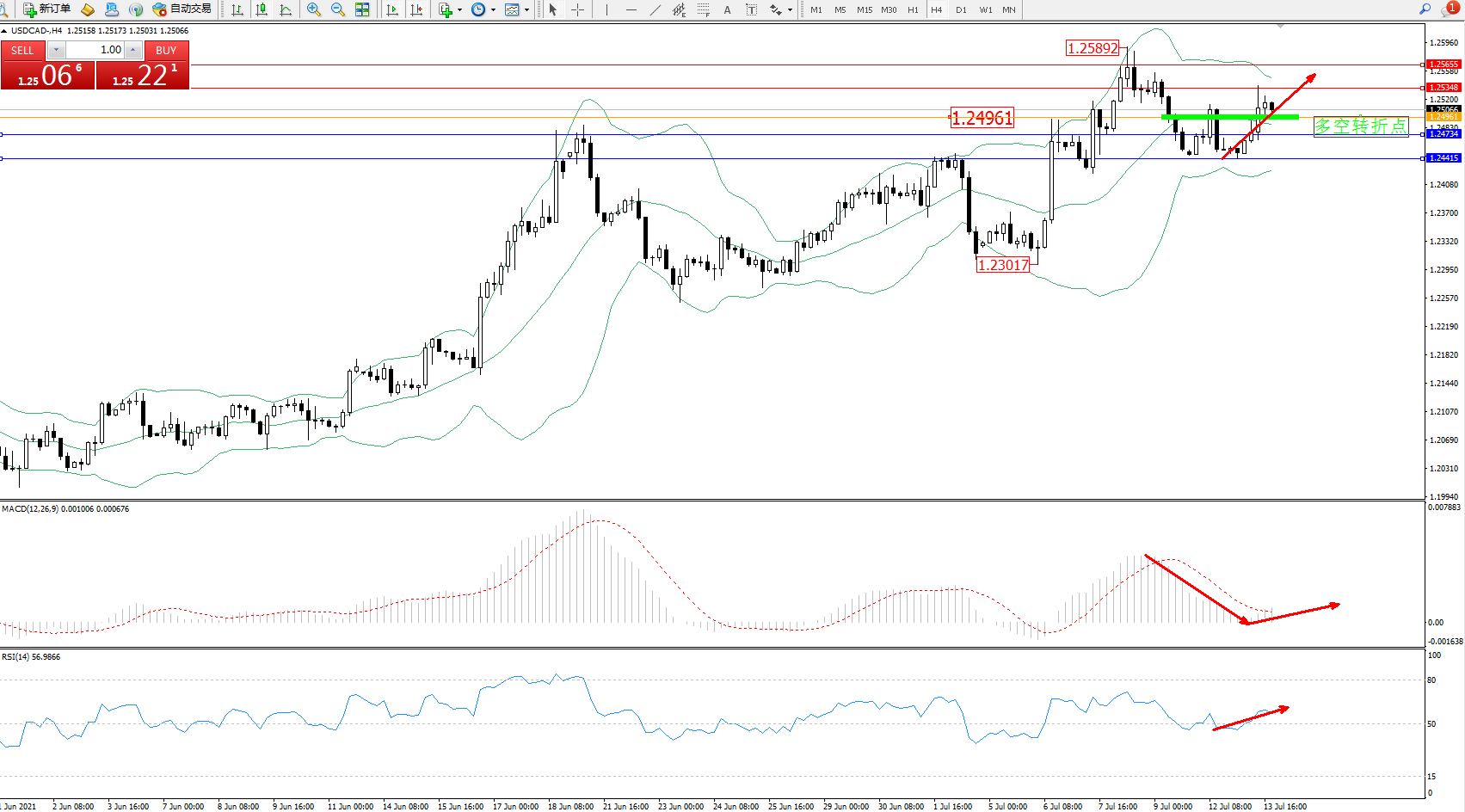 交易策略:1.24961上方看涨,目标1.25348、1.25655