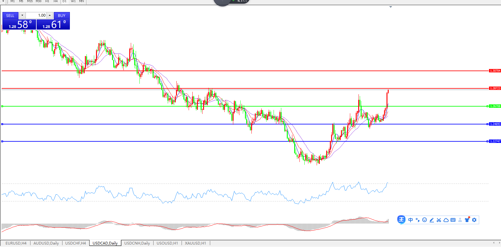 美元兑加元USDCAD 日线图: