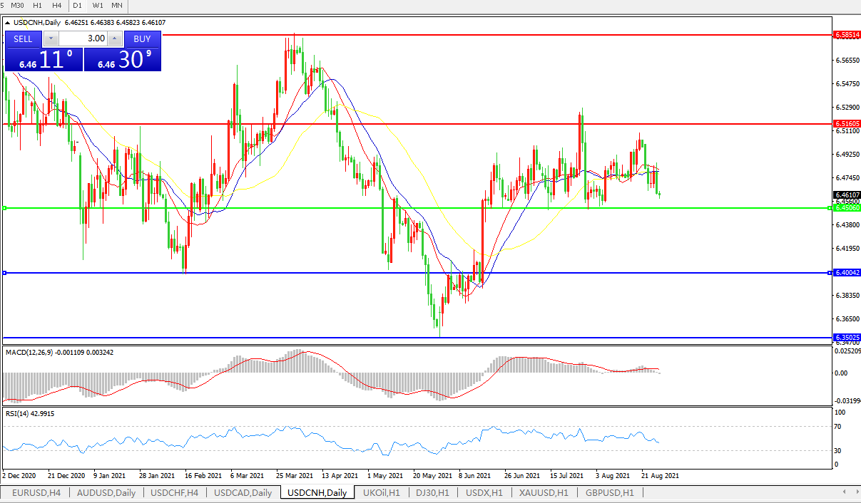 备选策略:在6.4500之下,看跌,目标价位为6.4000,然后为6.3500。