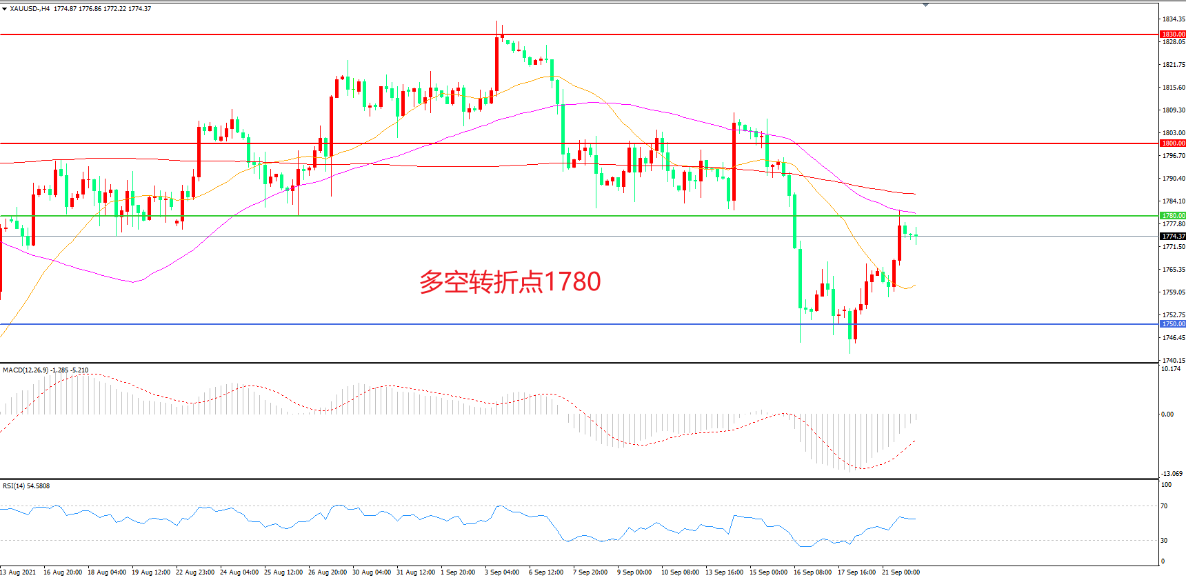 多空转折点:1780.00