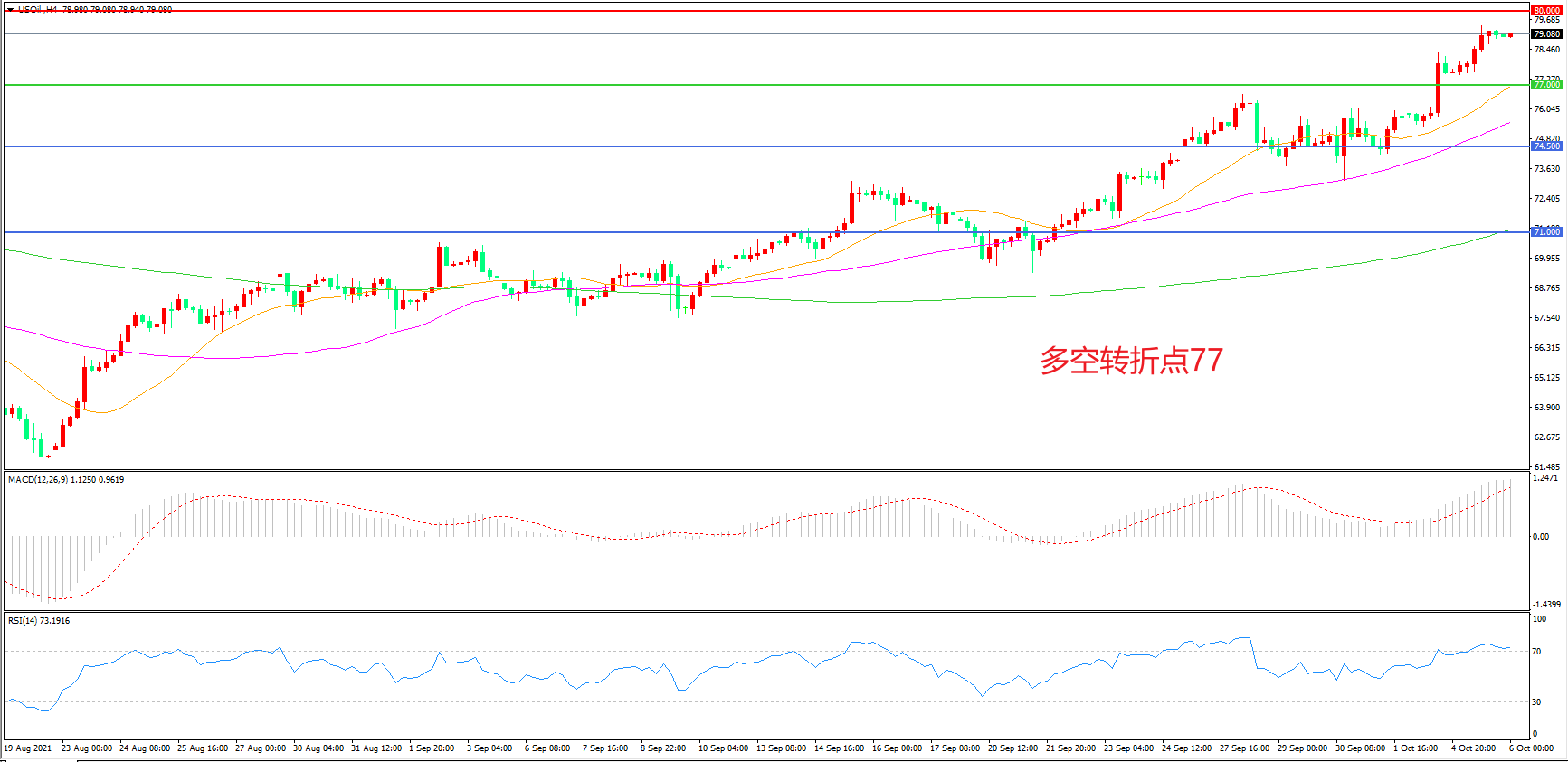 由于全球遭遇能源荒叠加OPEC+最新会议决定不增产,原油市场多头攻城略地,美国WTI原油大幅飙升后收报79.03美元/桶,创2014年10月21日以来收盘新高。在过去七周,油价已经几乎毫无干扰地持续上涨,累涨逾25%,但这并不意味着上涨的潜力枯竭, 寒冷的天气可能导致电力从天然气转向石油或煤炭,也造成石油供应持续紧张。