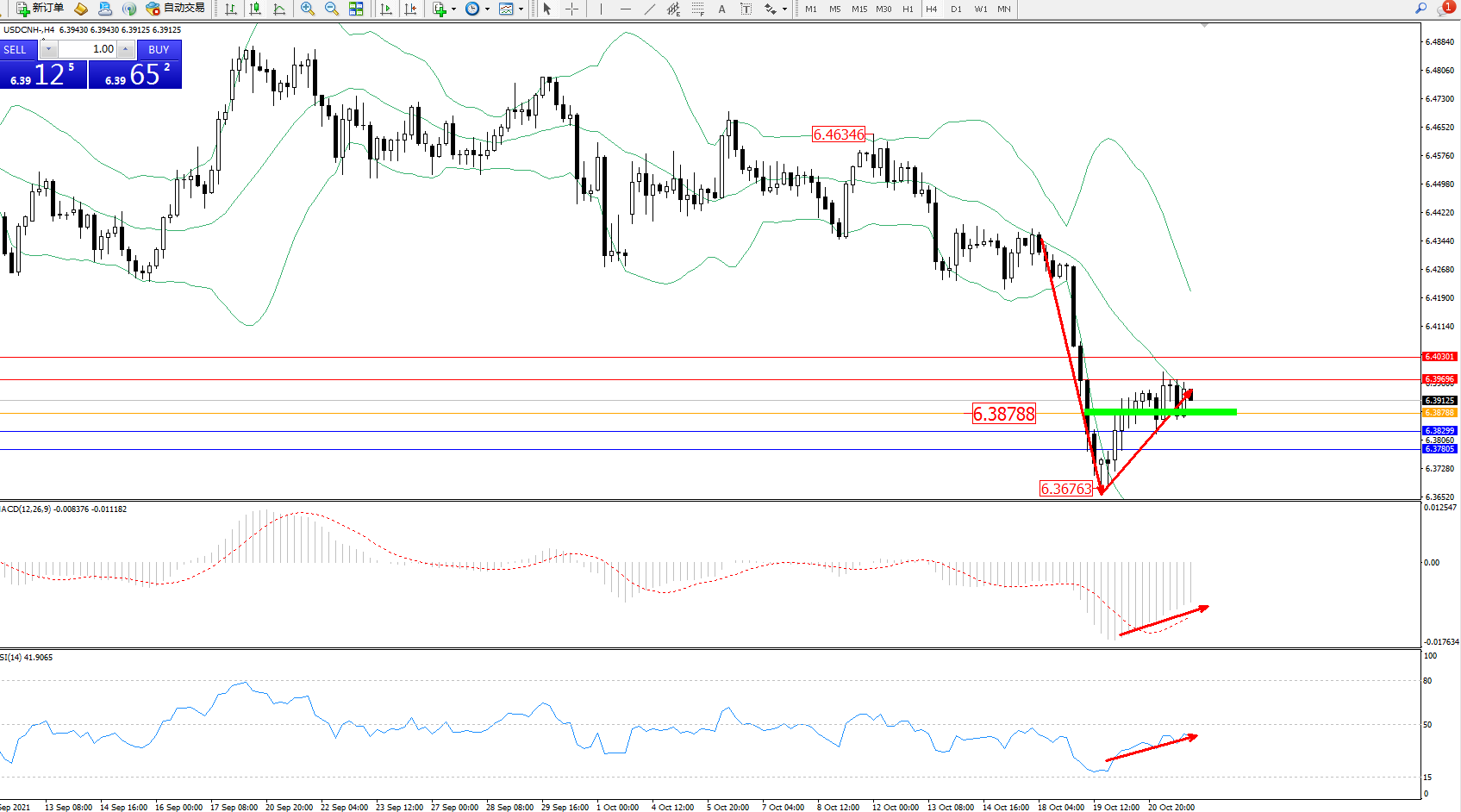 交易策略:6.38788上方看涨,目标6.39696、6.40301