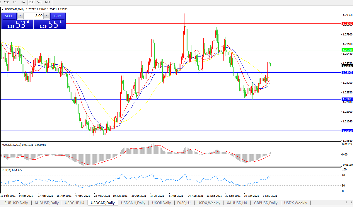 技术面简析:日图均线开始呈有序多头排列,汇价快速拉升,MACD运行于0轴上且量能小幅放量,RSI延续反弹,预计短期汇价大概率将在反弹修正后进一步下行。