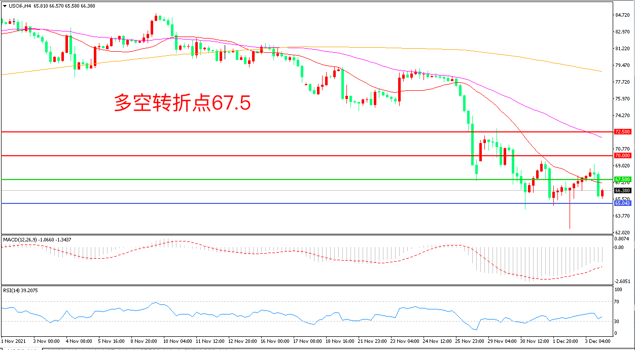 交易策略: 在67.50之下看跌,目标65.00 62.00
