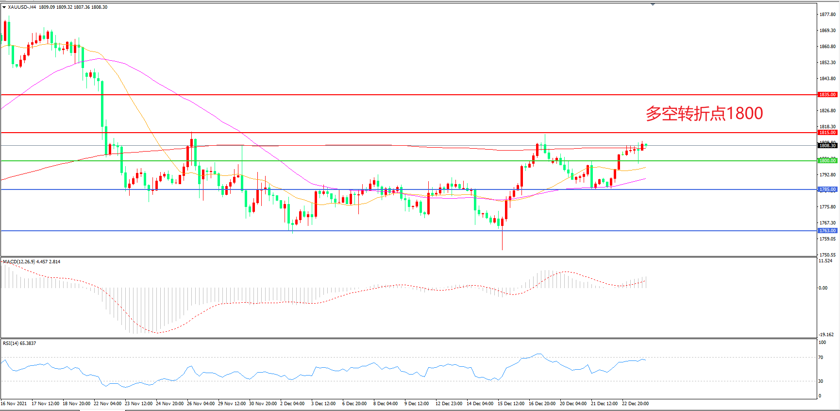 交易策略:在1800.00之上看涨,目标1815.00       1830.00