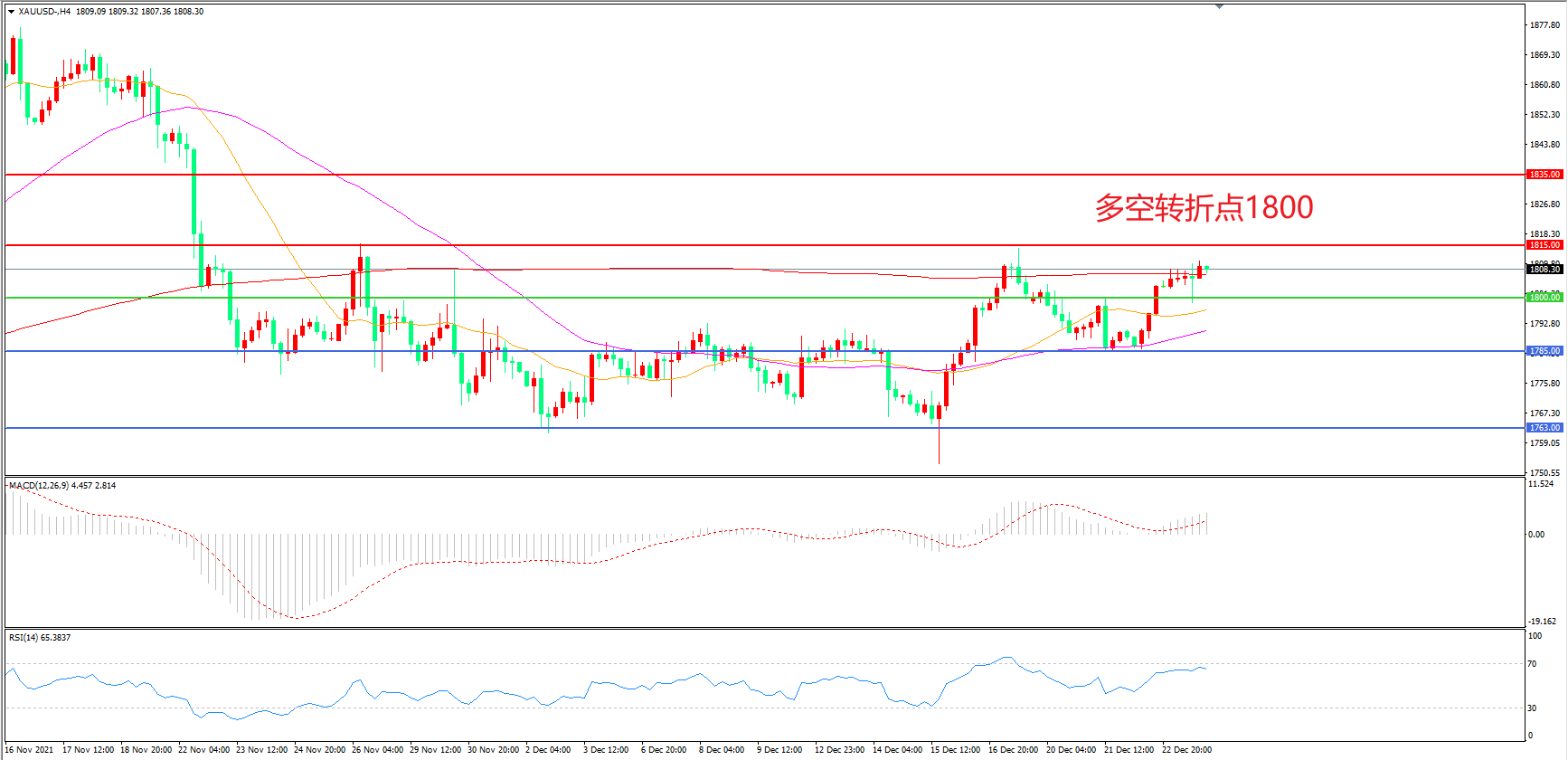 交易策略:在1800.00之上看涨,目标1815.00 1830.00