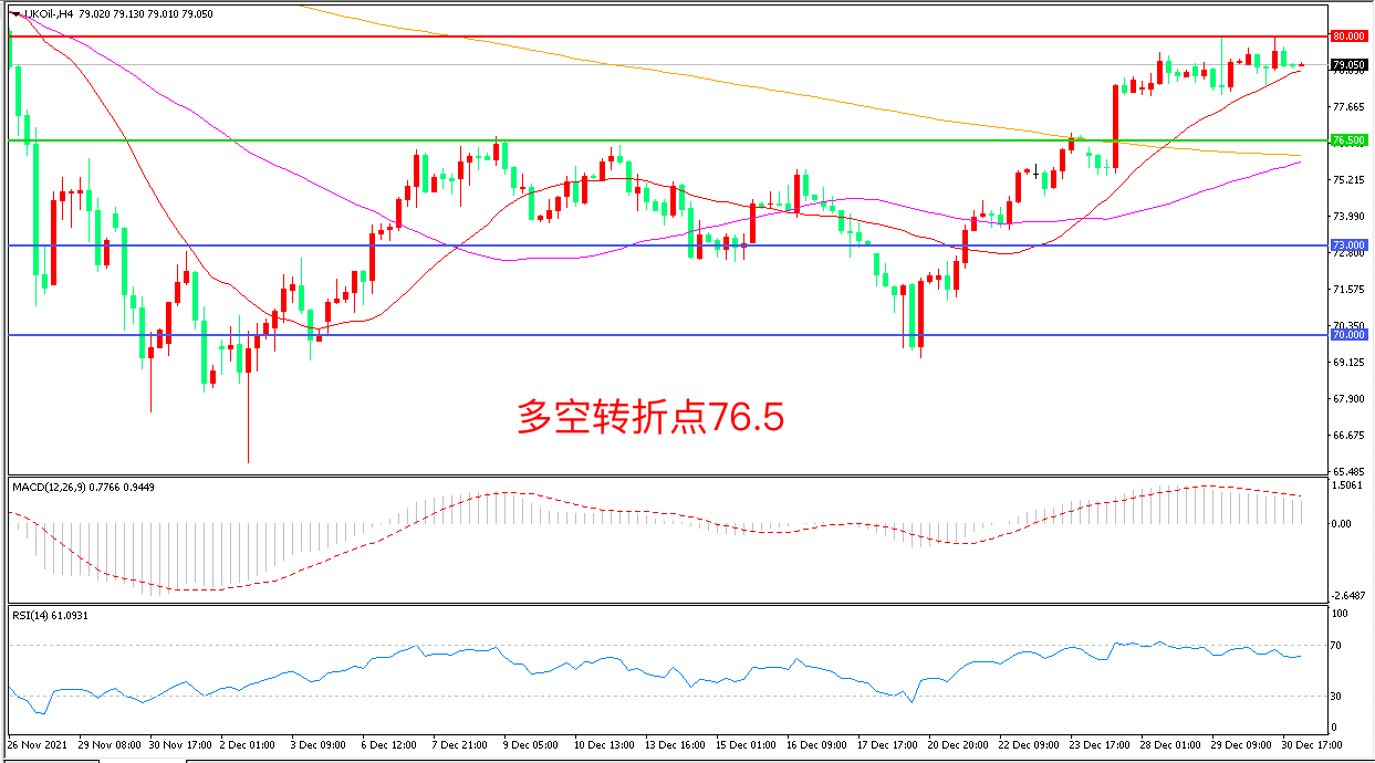 交易策略:在76.50之上看涨,目标80. 00 83.00