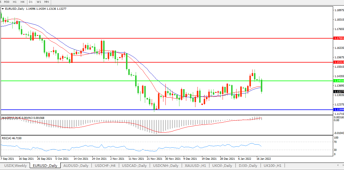 交易策略:1.1400下方看跌,目标1.1200、1.1000