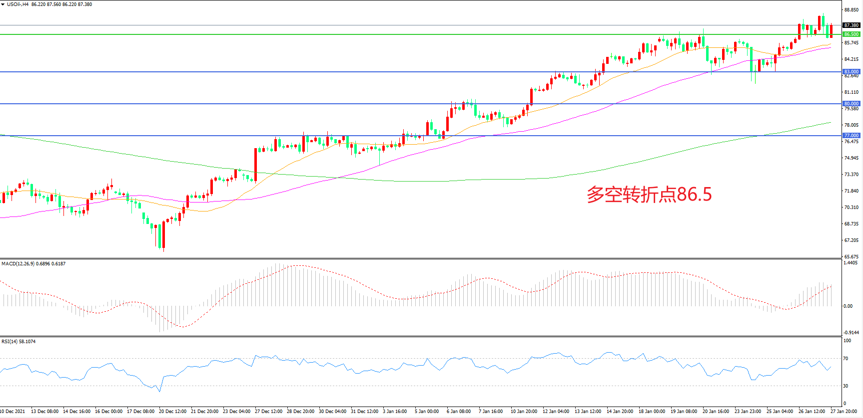 交易策略:在86.50之上看涨,目标90.00 93.00