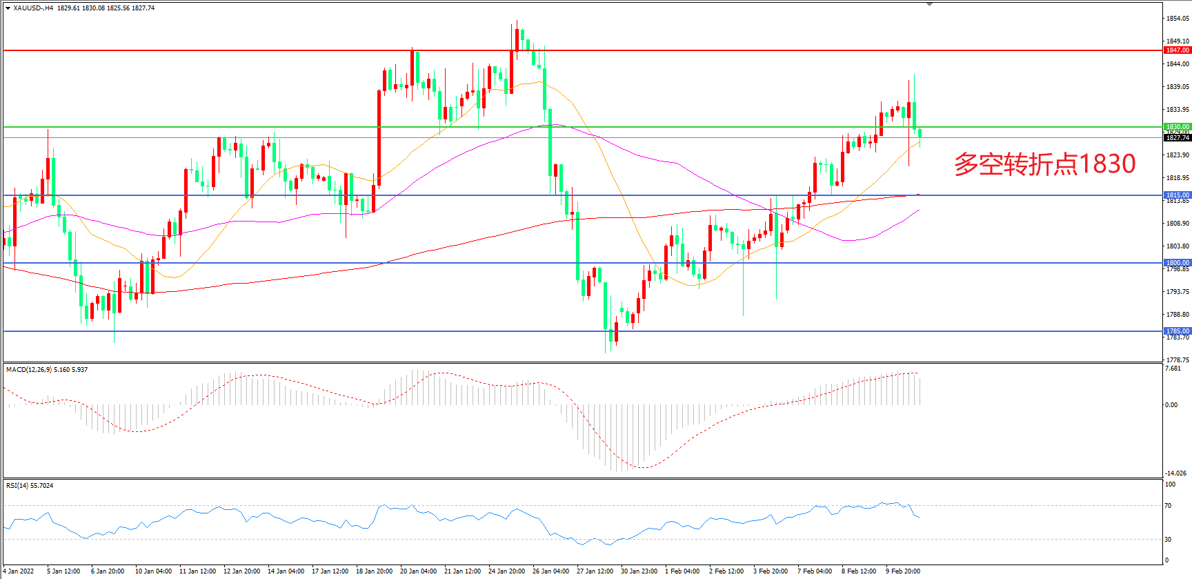 交易策略:在1830.00之上看涨,目标1847.00       1865.00