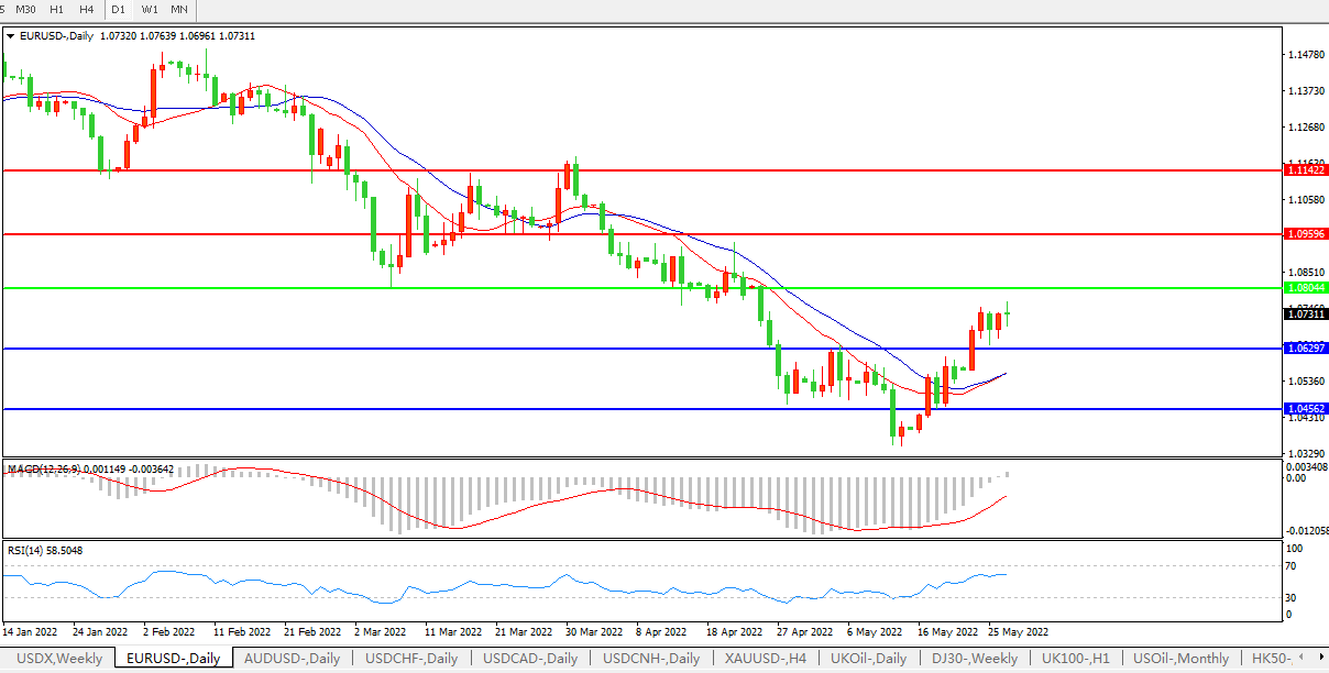 欧元兑美元EURUSD 日线图: