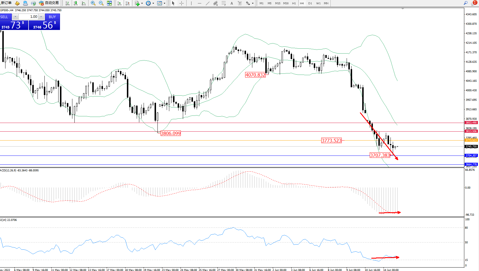 交易策略:3773下方看跌,目标3704、3664