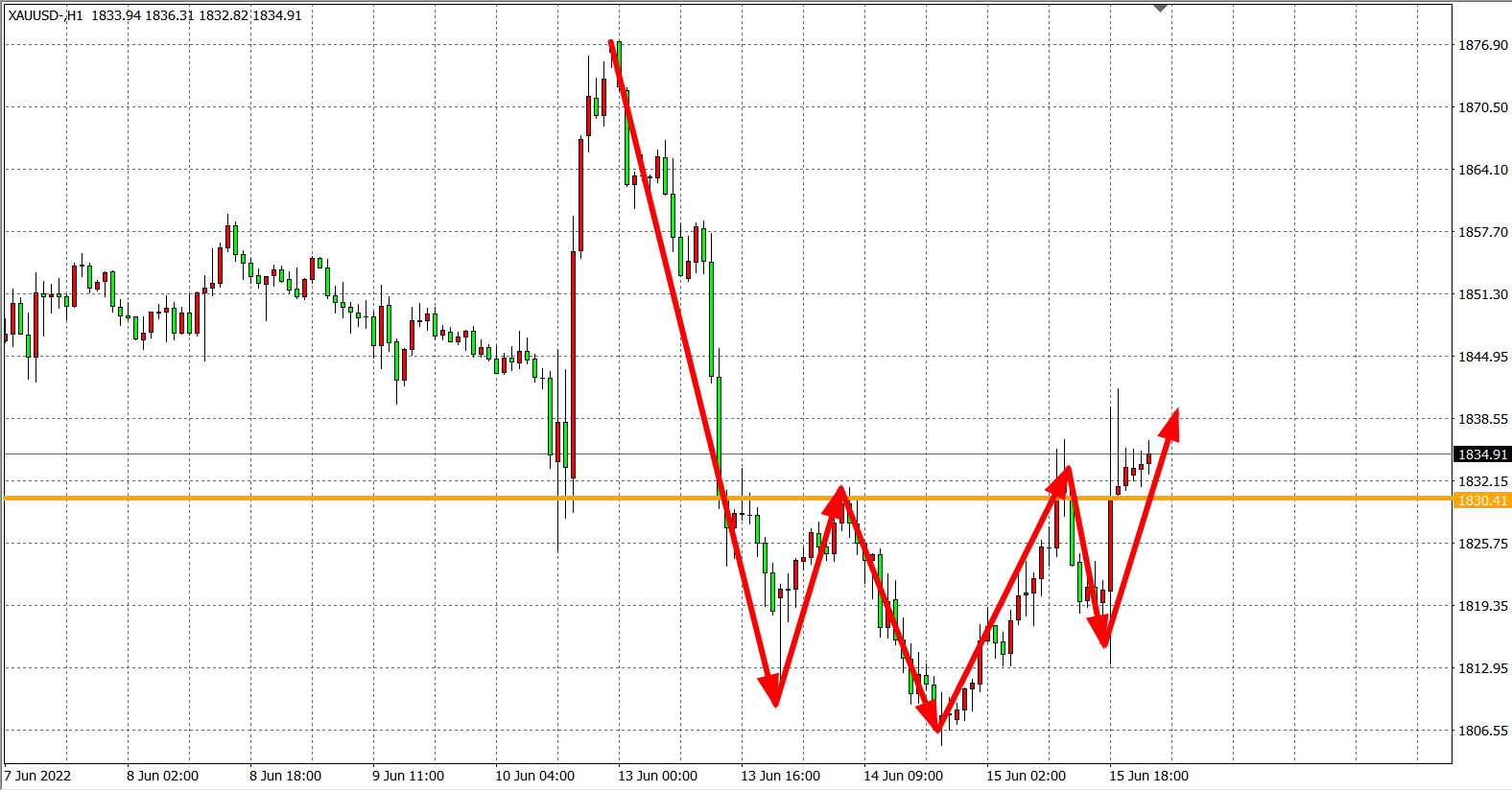 现货黄金XAUUSD    1小时图