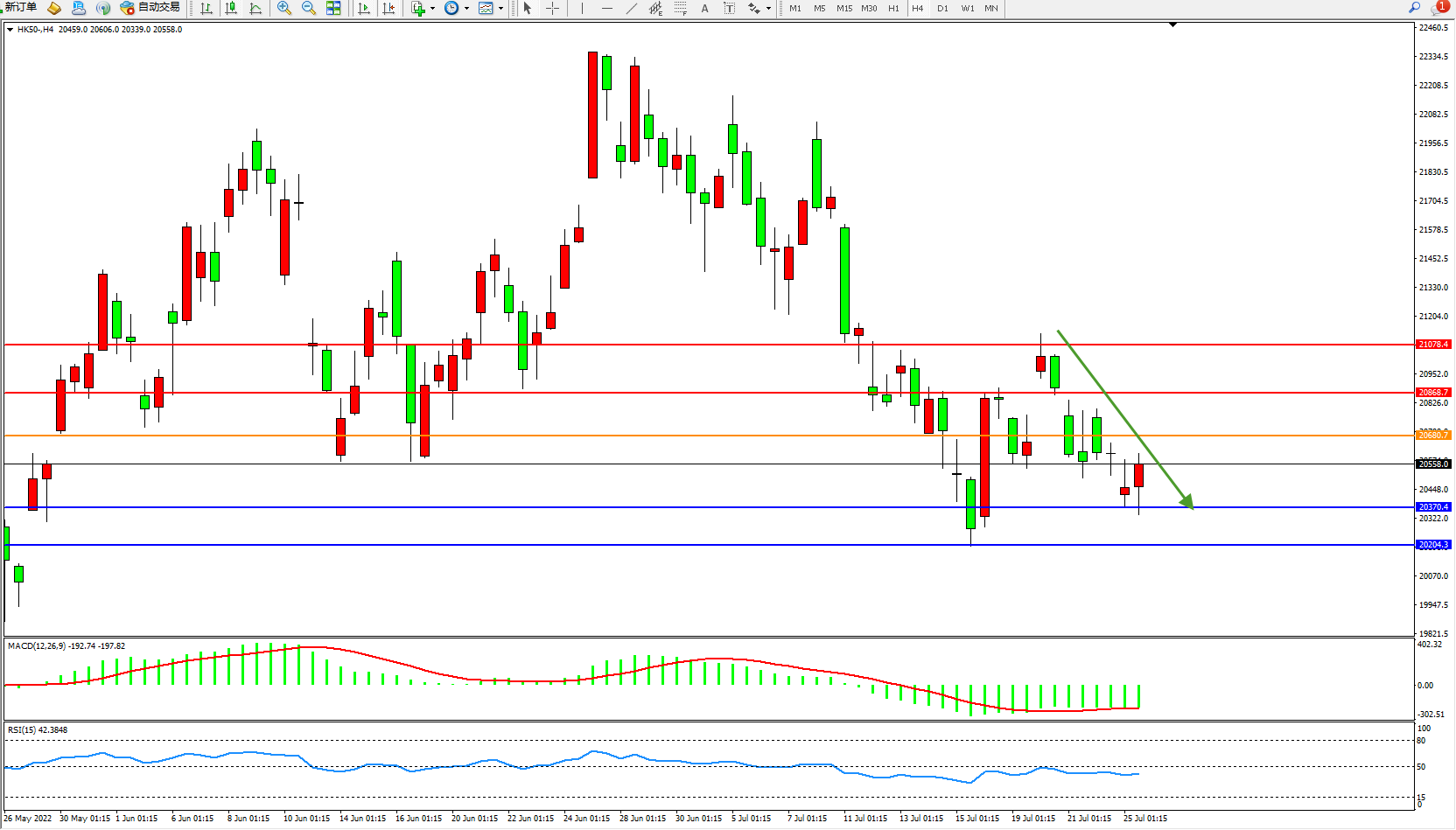 恒指HK50 4小时图