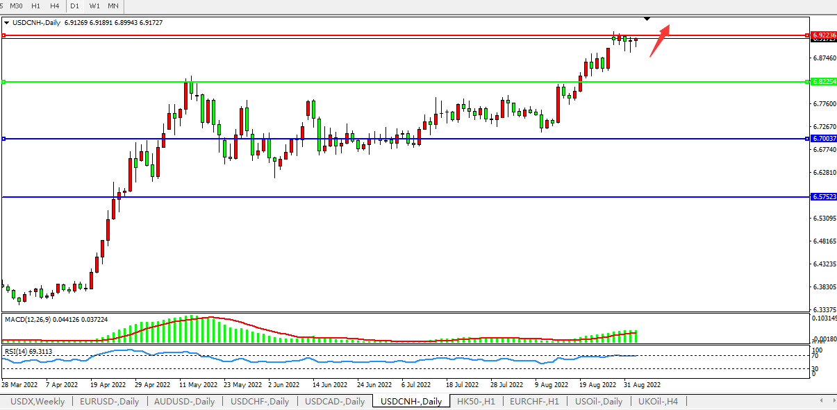 备选策略:在6.8225之下,看跌,目标价位为6.7000、6.5750