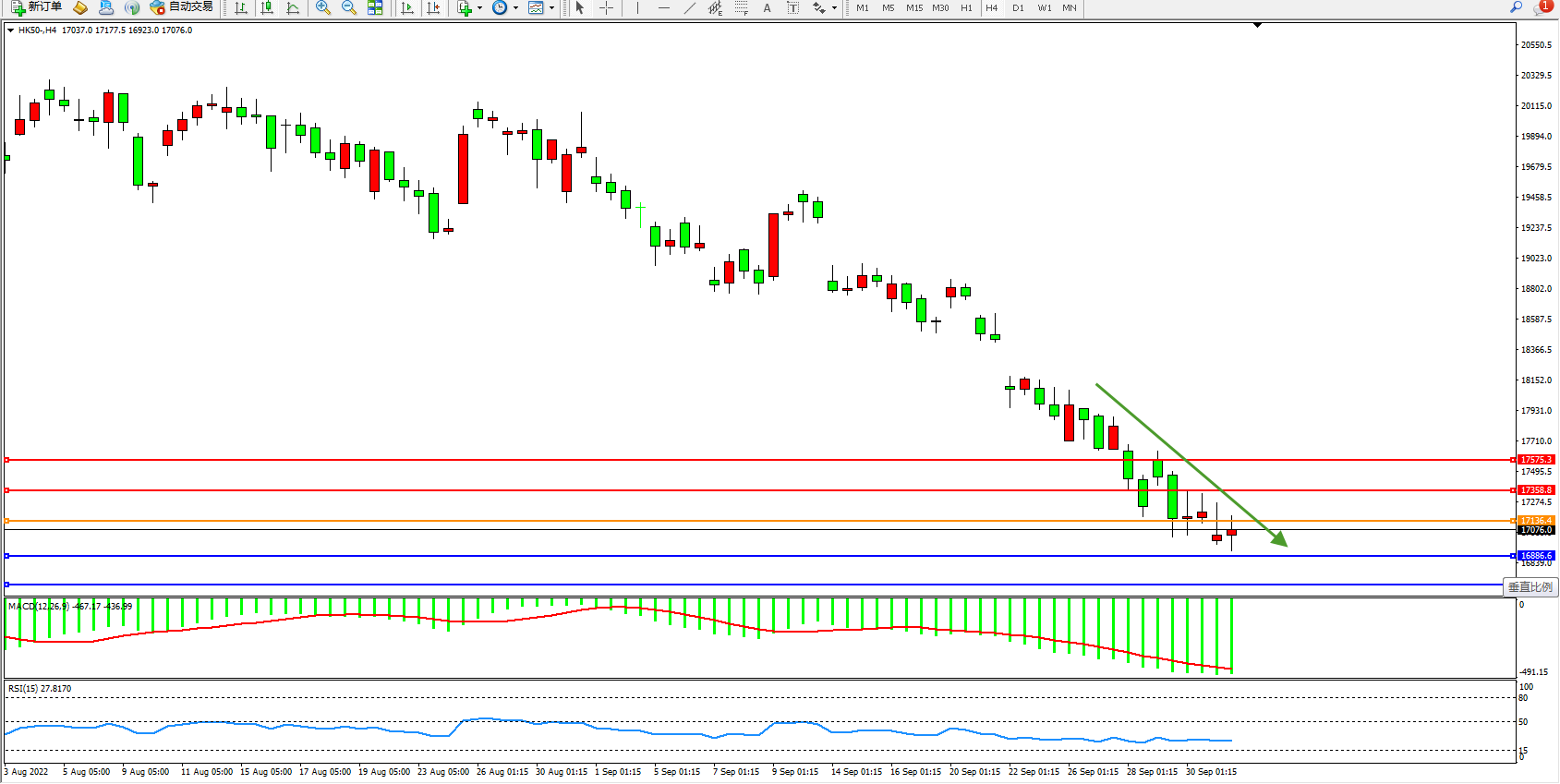 恒指HK50 4小时图