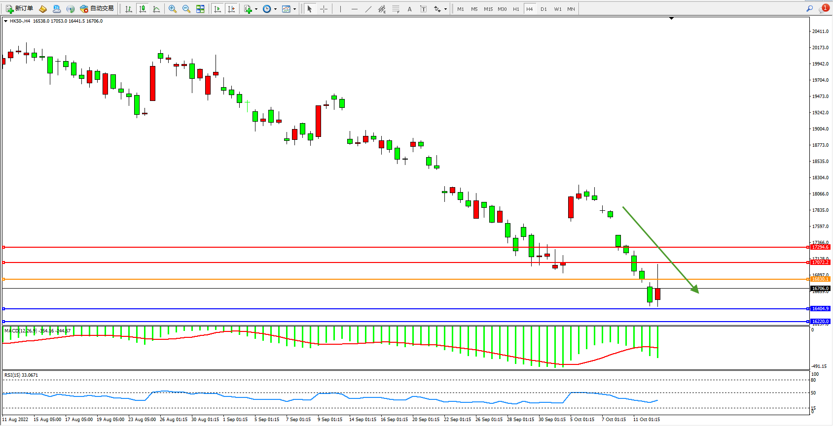 恒指HK50 4小时图