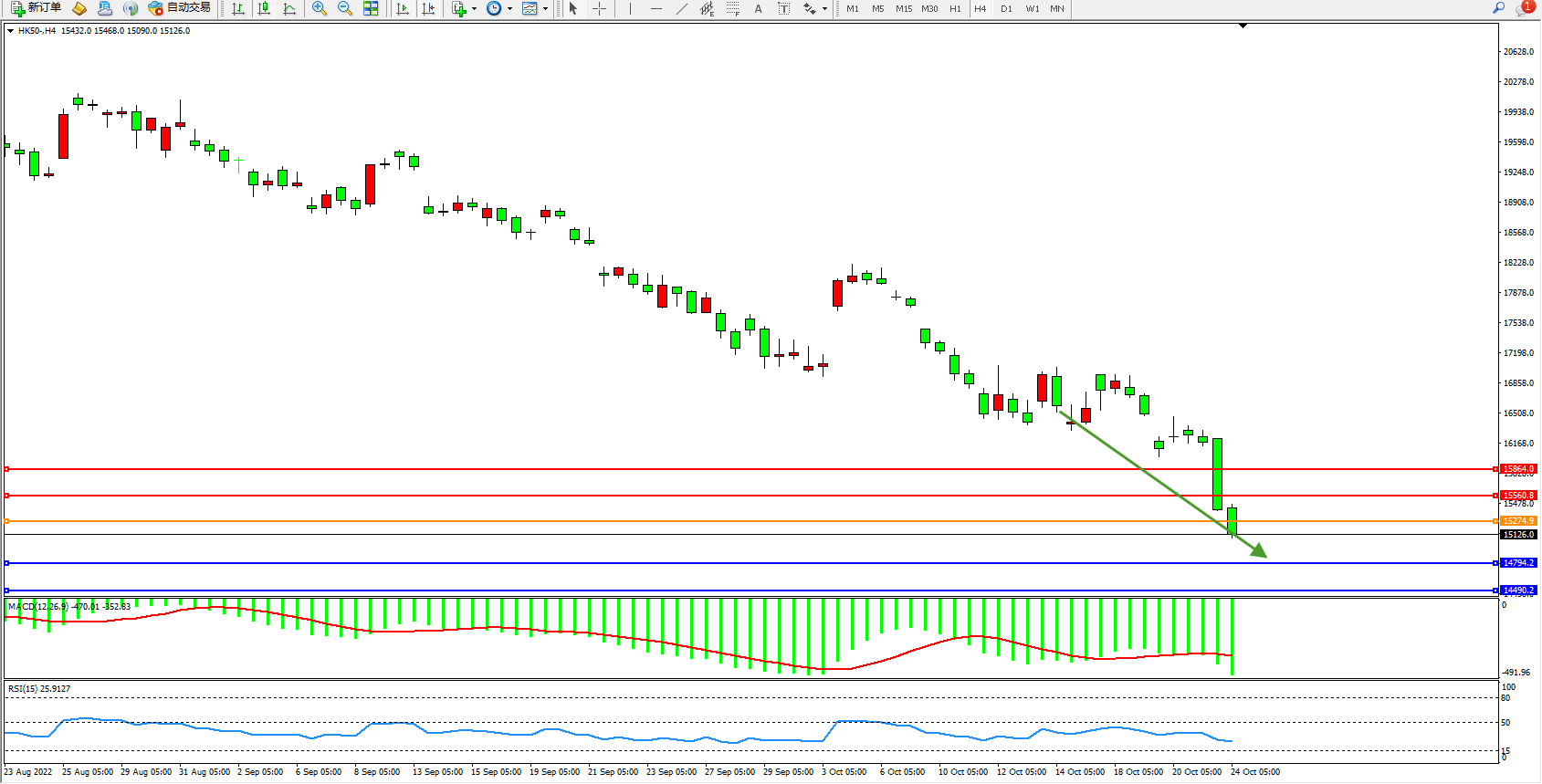 恒指HK50 4小时图