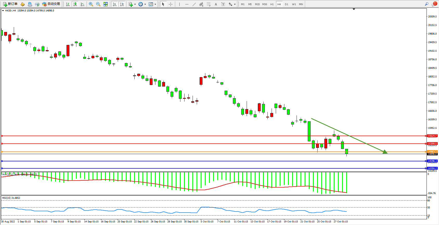 恒指HK50 4小时图