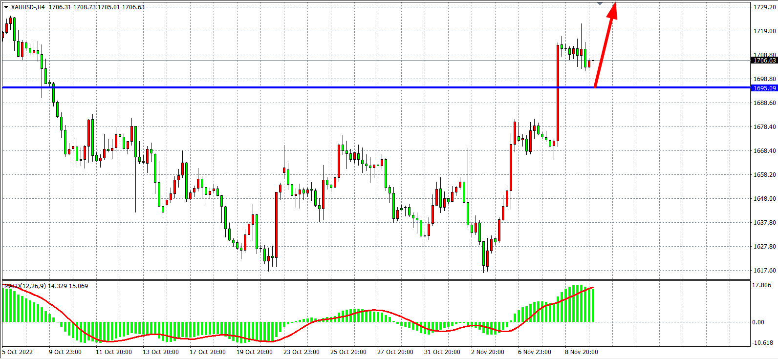 交易策略:在1695.00之上看涨,目标1720.00 1735.00