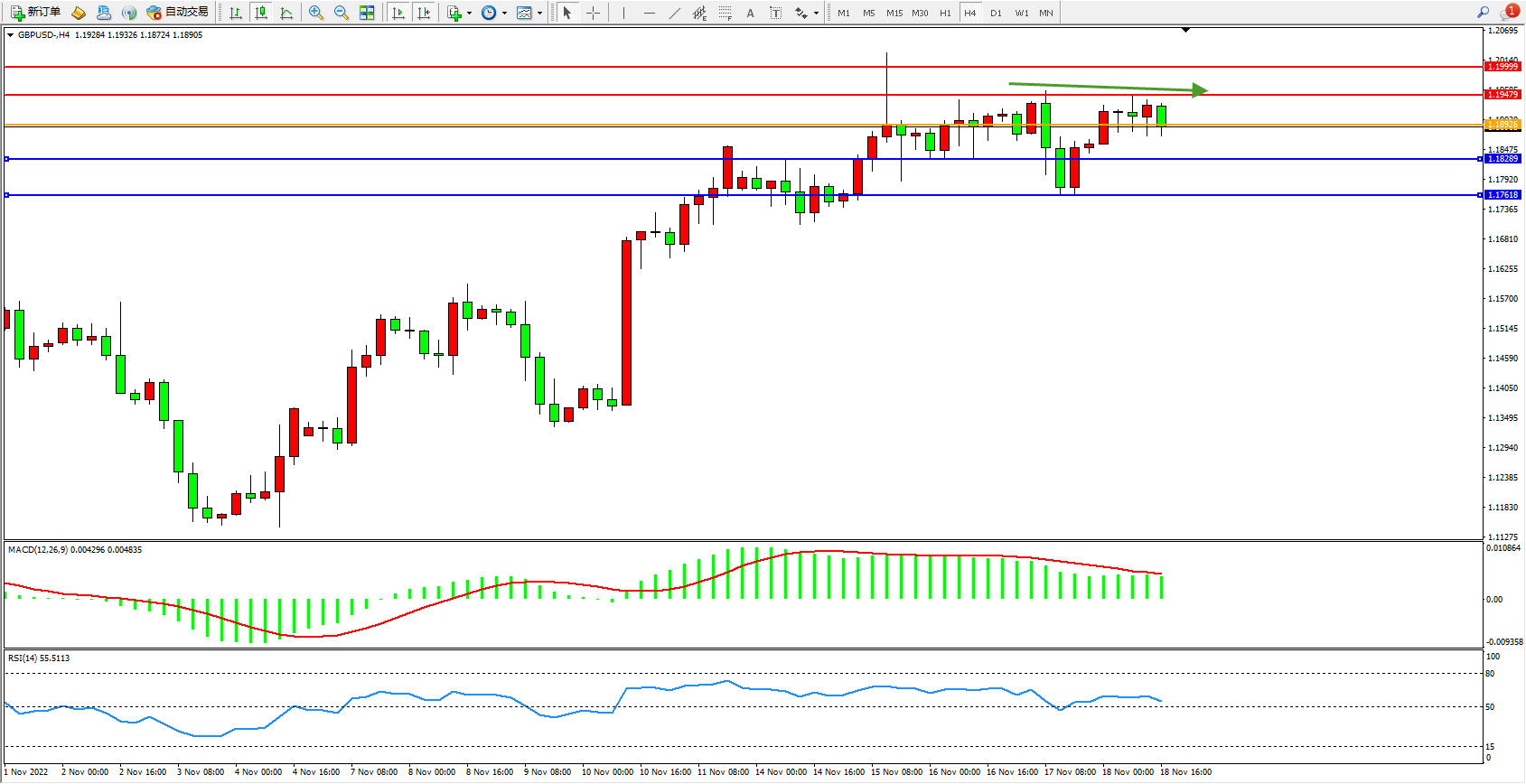 备选策略: 1.18926上方看涨,目标1.19479、1.19999