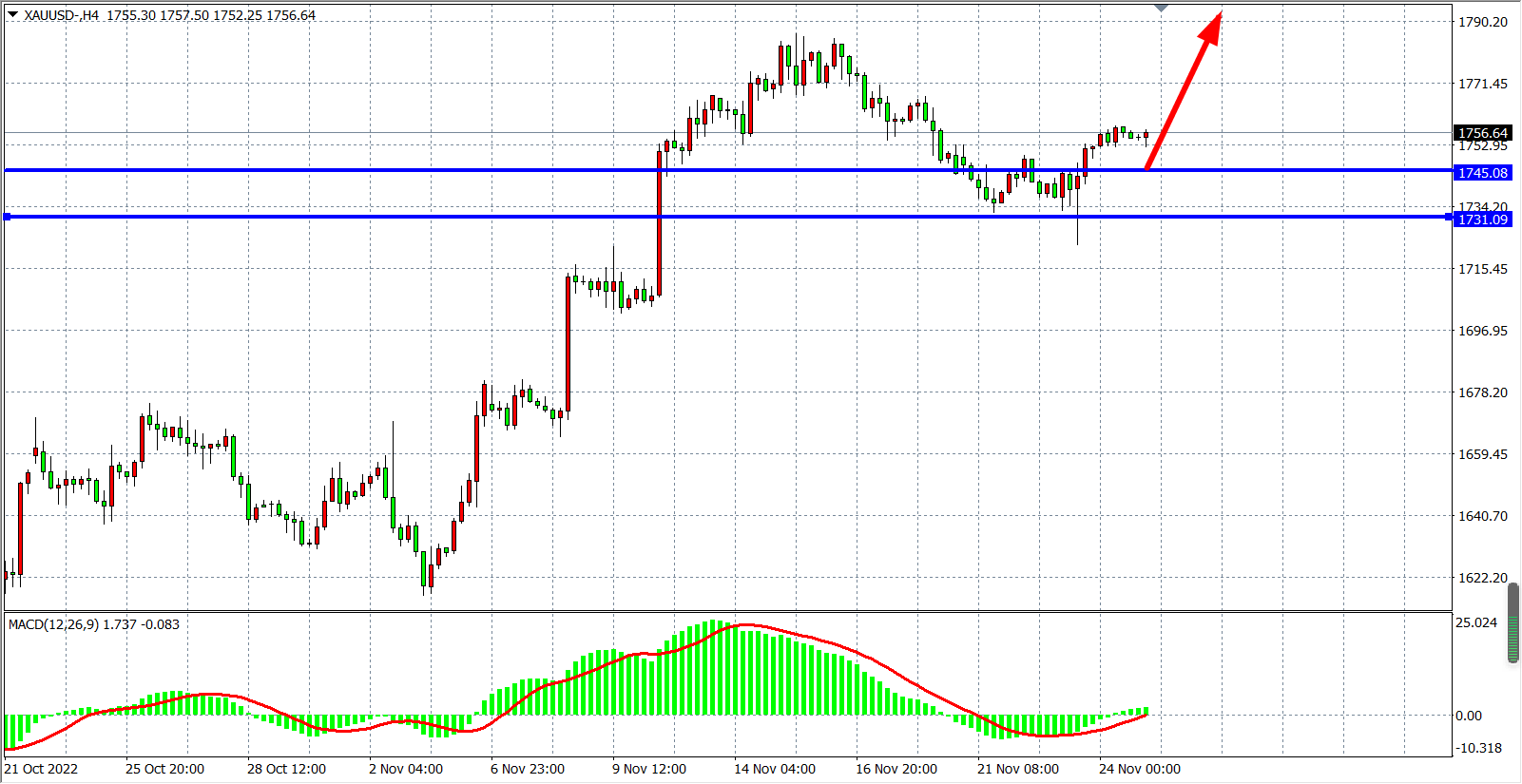 黄金:支撑上移1745