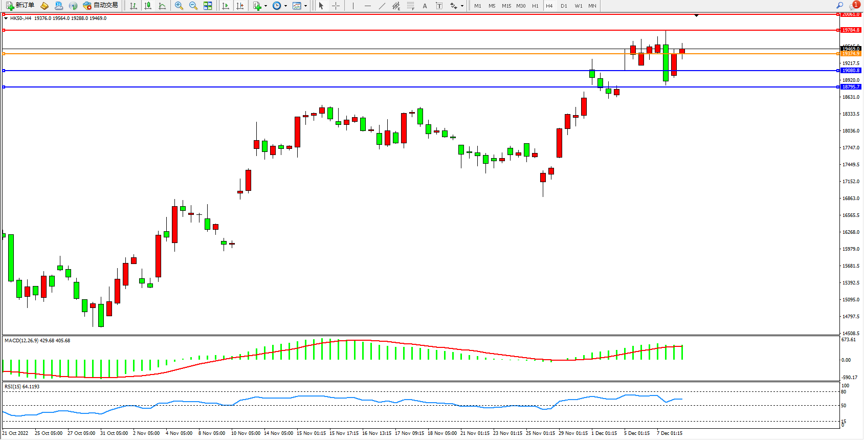恒指HK50 4小时图