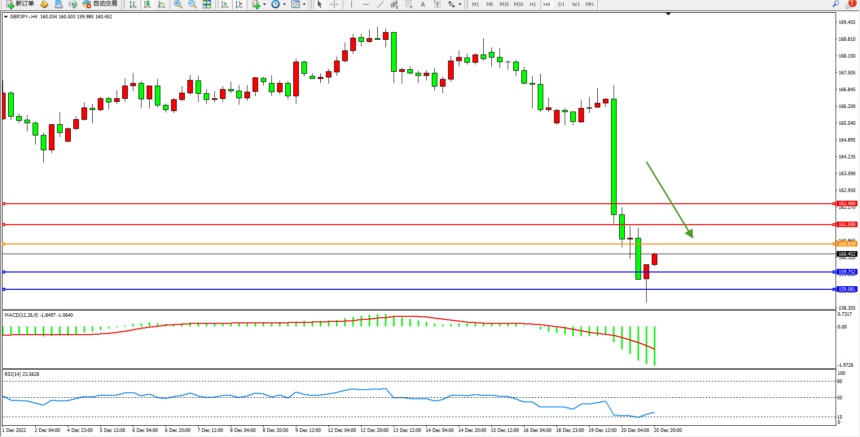 交易策略:160.839下方看跌,目标159.752、159.081