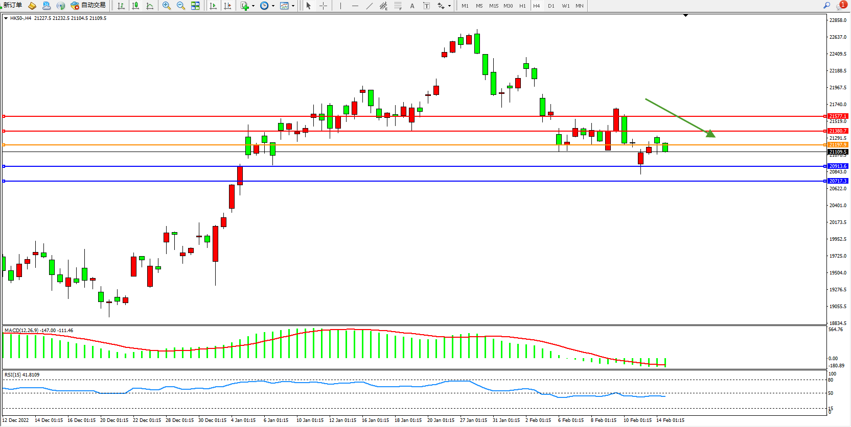 恒指HK50 4小时图