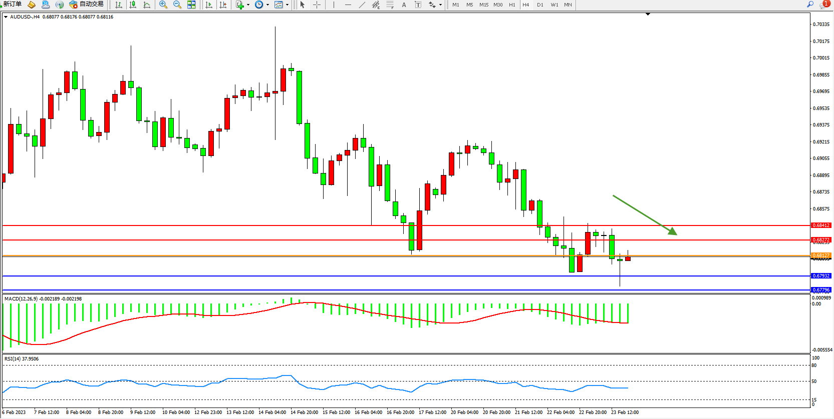 交易策略:0.68127下方看跌,目标0.67932、0.67796